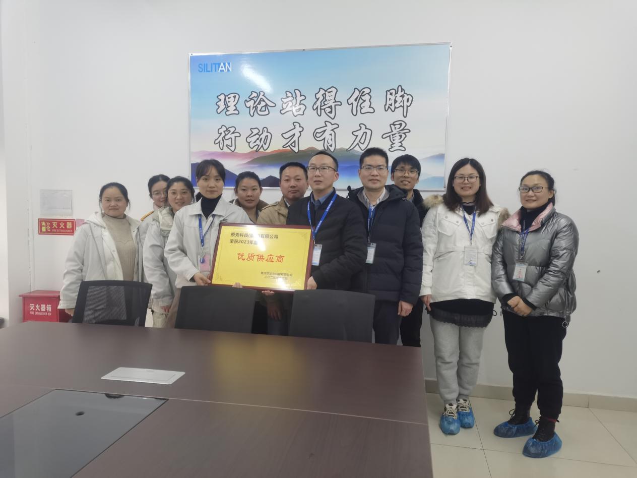 2024年1月4日,重庆市旭宝科技有限公司(以下简称旭宝科技)向原秀科技(重庆)有限公司(以下简称原秀科技)授予优质供应商荣誉牌匾,旭宝科技副总经理王小英、原秀科技执行副总邓瑞华一行出席了本次会议。